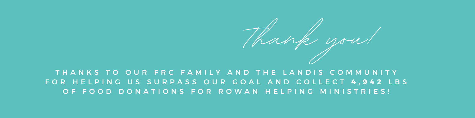 We meet on Sundays at 9:00am & 11:00am at 210 N Central Ave in Landis. At FRC, we welcome you as you are. You don’t have to dress up and you don’t have to have it all figured out (we don’t have it all figured out either).